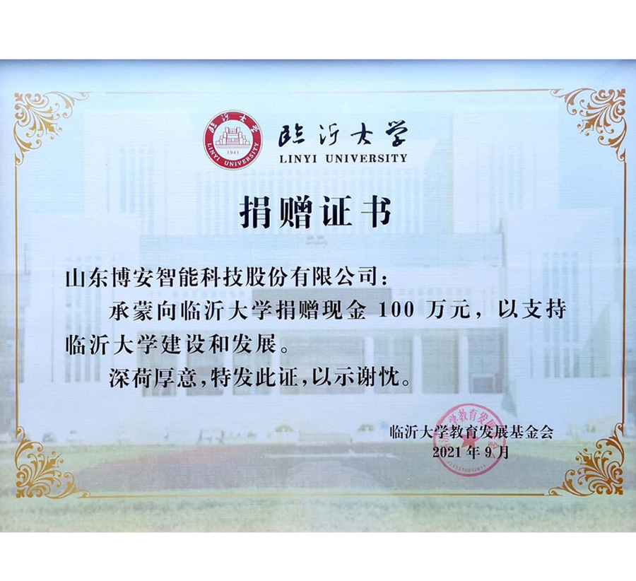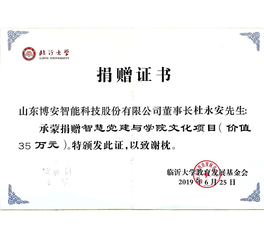 2019臨沂大學(xué)捐贈證書-智慧黨建與學(xué)院文化項目35萬元設(shè)備