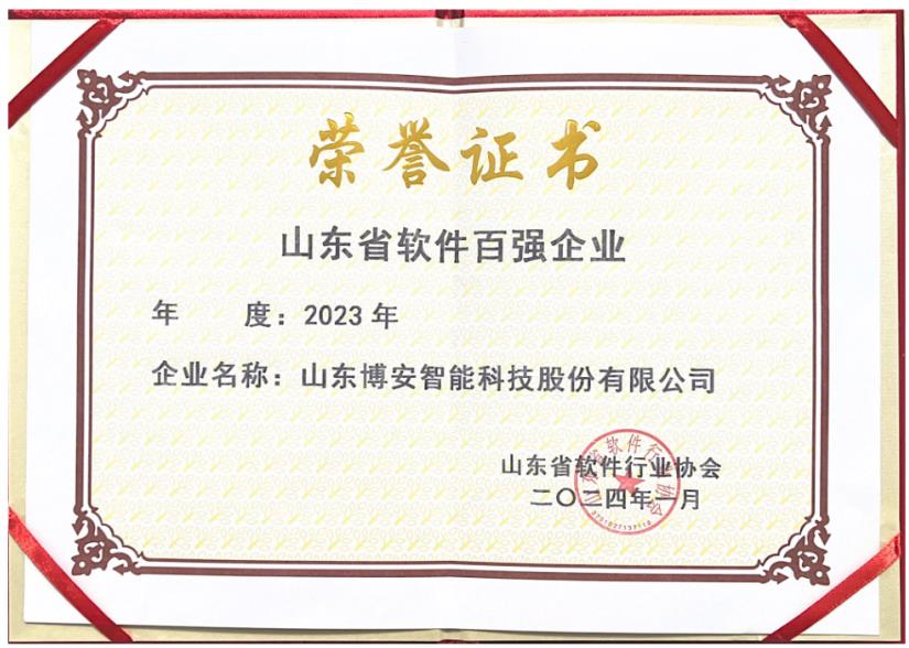 2024年1月25日,在濟南市華禾普蕾司頓酒店,舉辦了隆重的頒獎儀式。我公司榮獲山東省軟件百強企業(yè),副總經(jīng)理張清雷代表公司參加了頒獎儀式。